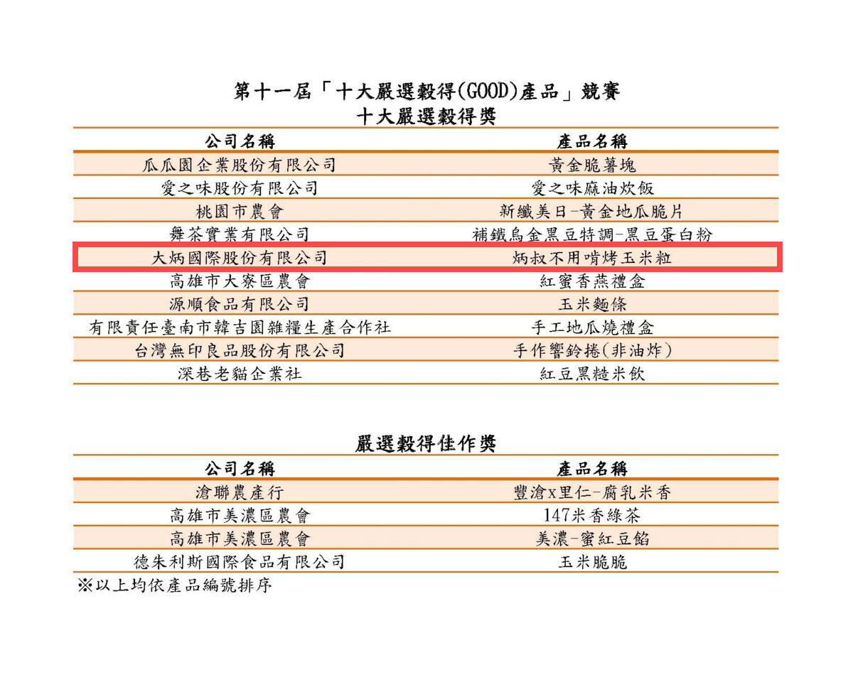 【不用啃烤玉米粒】榮獲第11屆十大嚴選榖得獎
