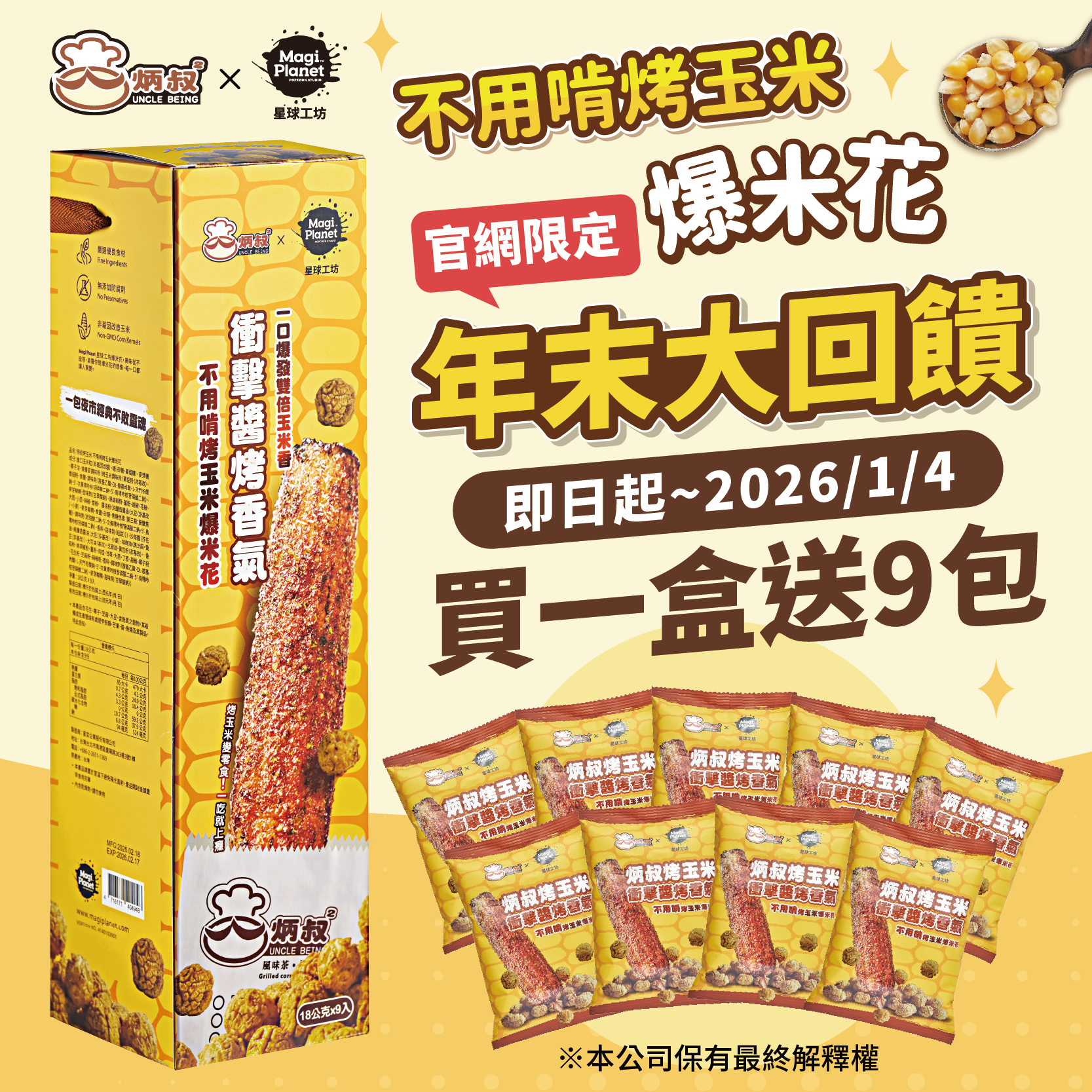 炳叔年末大回饋 【不用啃烤玉米爆米花】買1盒送9包